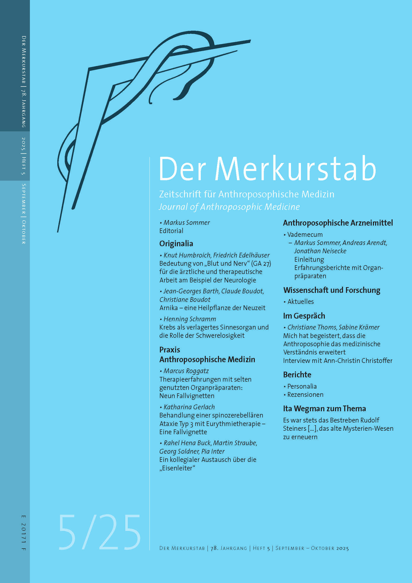 Haben Sie auch die Erfahrung gemacht, dass die Werke von Rudolf Steiner Ihnen im Praxisalltag Inspiration sind? Die Autorinnen und Autoren in dieser Ausgabe sind tief in Texte Steiners eingetaucht und berichten, wie sie aus den Anregungen Steiners zu ihren Therapiewegen gekommen sind. Im Interview erzählt Ann-Christin Christoffer von ihren Erfahrungen als Assistenzärztin und ihrem persönlichen Zugang zur Anthroposophischen Medizin. Viel Freude beim Lesen!