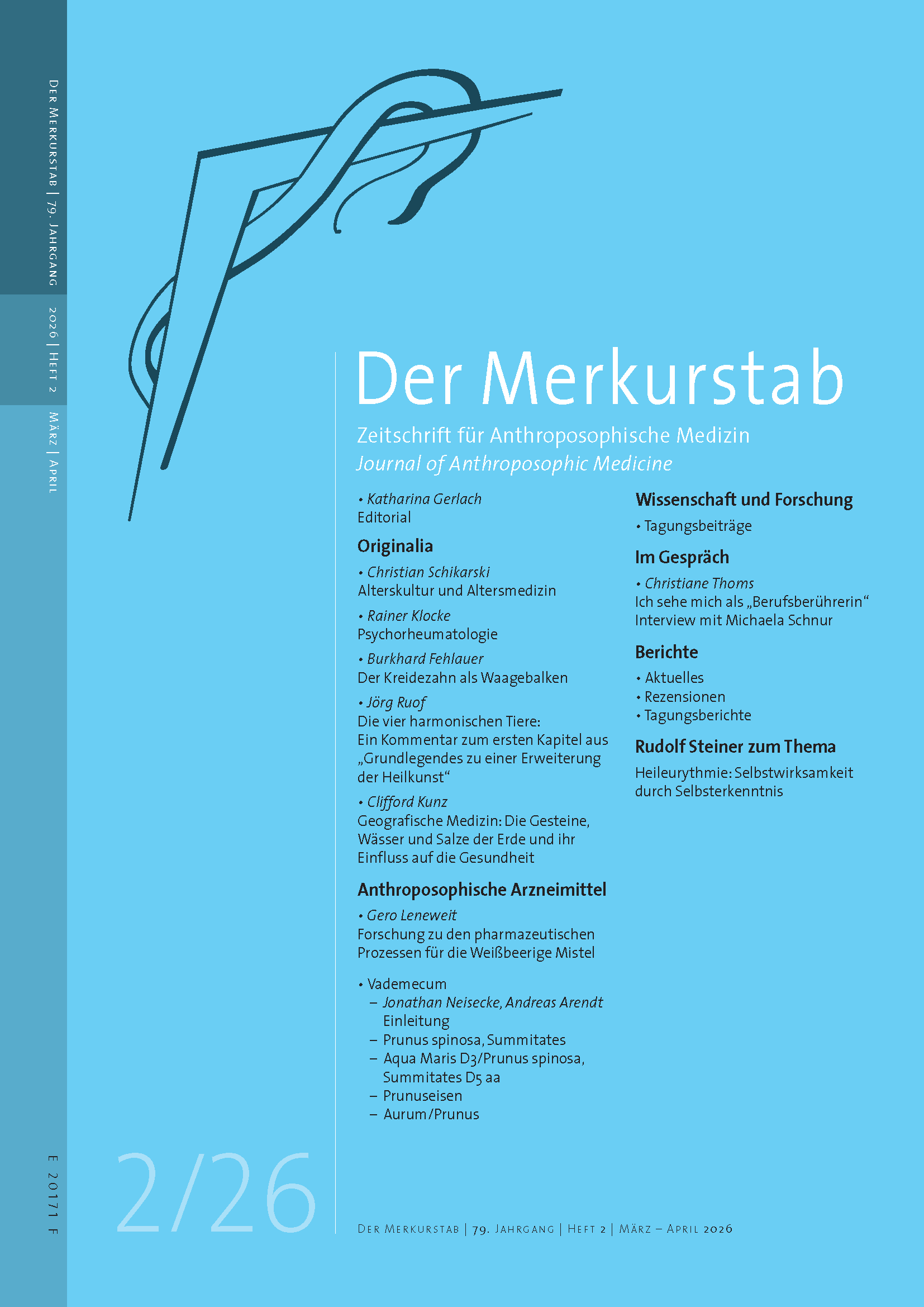 Die aktuelle Ausgabe führt uns vor Augen, wie sowohl äußere Prägungen als auch innere Selbstwirksamkeit die Individualisierung des Menschen vollziehen. Der Artikel zur Psychorheumatologie zeigt genau dieses Spannungsfeld zwischen seelischer Prägung und Selbstgestaltung. Ein Artikel zur Altersmedizin betont die Notwendigkeit eines multiperspektivischen Zugangs, denn gerade im Alter wird sichtbar, wie Gesundheit von der gelungenen Integration körperlicher, geistiger und seelischer Aspekte abhängt und wie viel durch eigenverantwortliches Handeln beeinflusst werden kann. Im Interview mit Michaela Schnur als Expertin für anthroposophische Pflege erfahren Sie, inwiefern sie sich als „Berufsberührerin“ sieht.